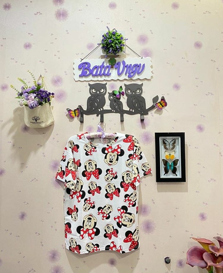 Kaos (kembang/leher v/leher bulat/lengan 3 per 4/karakter)